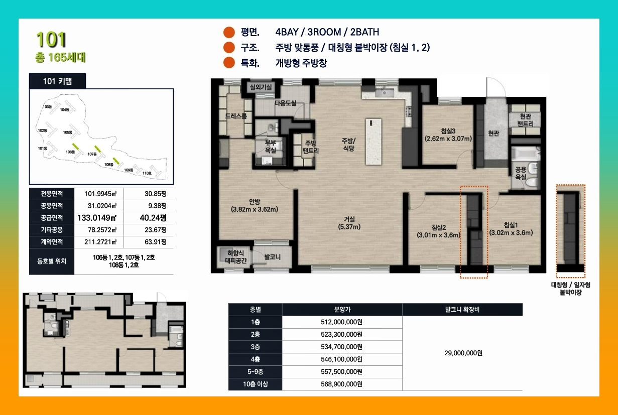 101 타입 : 5억 1,200만 원~5억 6,890만 원